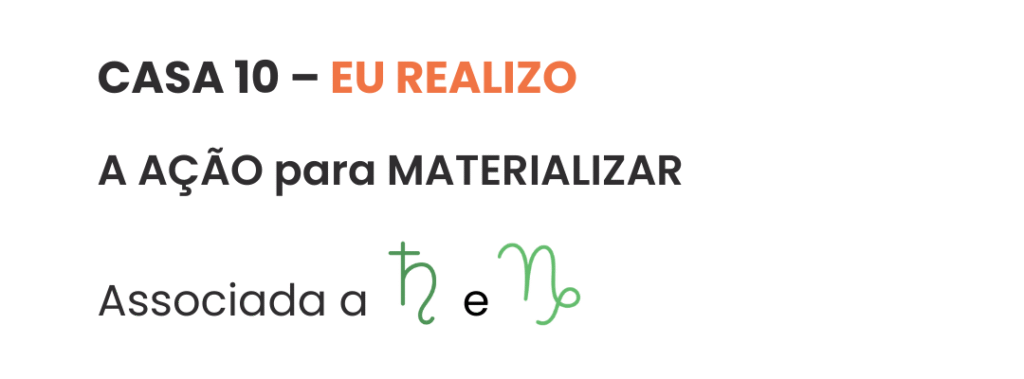 A casa 10 é o meu lugar conquistado no mundo. Posição. Reconhecimento. Reputação. Poder, status, autoridade. É a materialização das buscas da 9ª. É tudo aquilo que posso realizar. Realizar-se é tornar-se REAL.